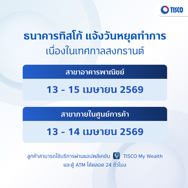 • สาขาทั่วไป ปิดทำการ 13-15 เม.ย.2569