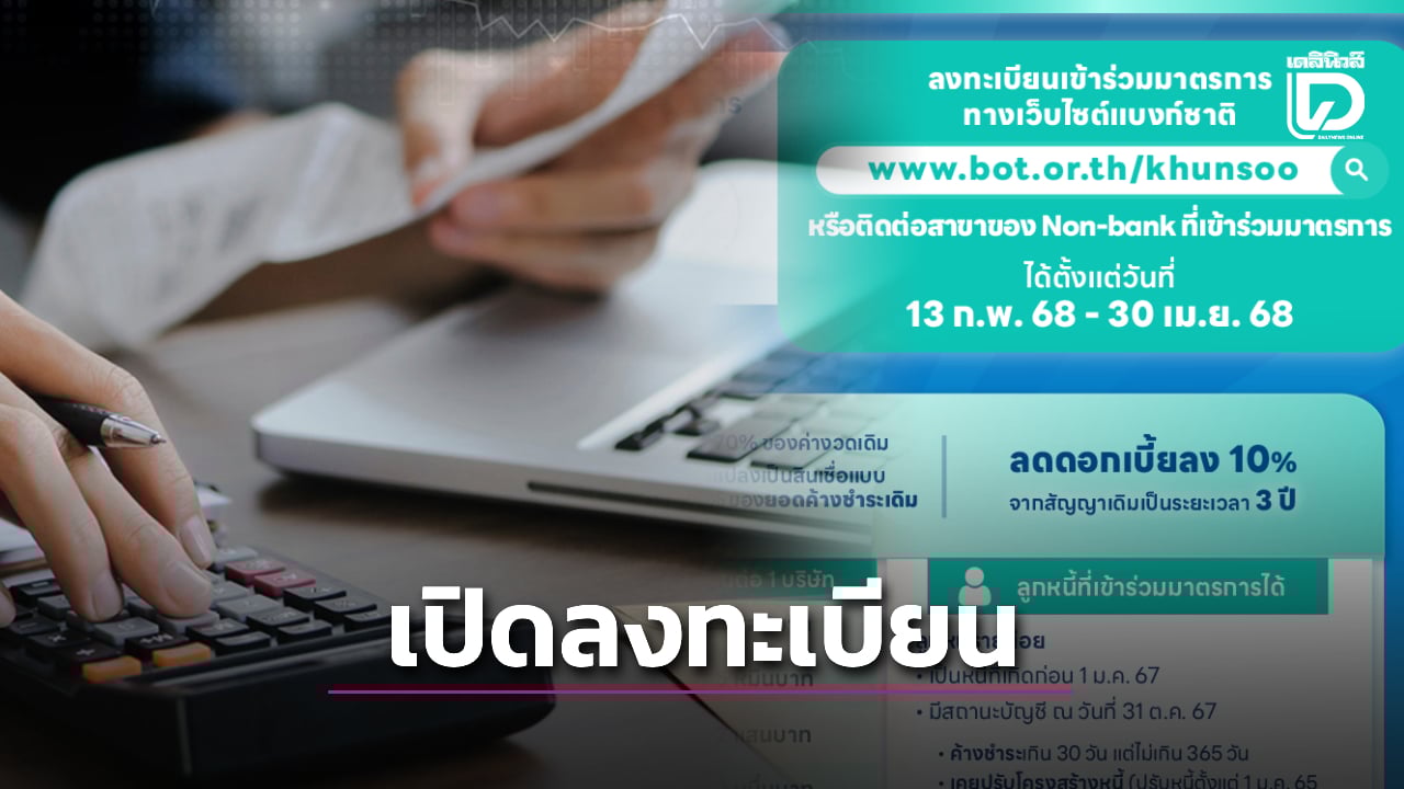 โครงการ “คุณสู้ เราช่วย” มีการขยายครอบคลุมลูกหนี้นอนแบงก์ ลูกหนี้ที่เข้าเงื่อนไข “คุณสู้ เราช่วย” สามารถลงทะเบียนเข้าร่วมมาตรการ ผ่านทางเว็บไซต์ธนาคารแห่งประเทศไทย www.bot.or.th/khunsoo ลูกหนี้นอนแบงก์เข้าร่วมได้เริ่มตั้งแต่วันที่ 13 กุมภาพันธ์ ถึงวันที่ 30 เมษายน 2568